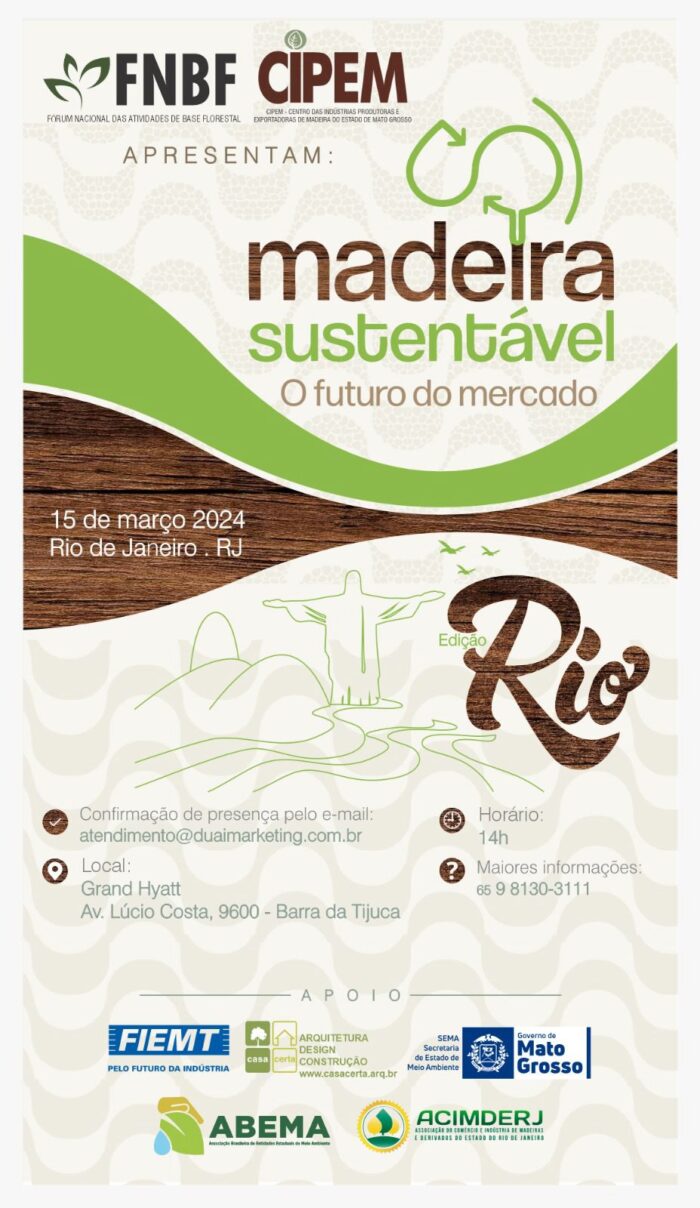 O Fórum Nacional das Atividades de Base Florestal (FNBF) e o Centro das Indústrias Produtoras e Exportadoras de Madeira de Mato Grosso (Cipem) realizam, no