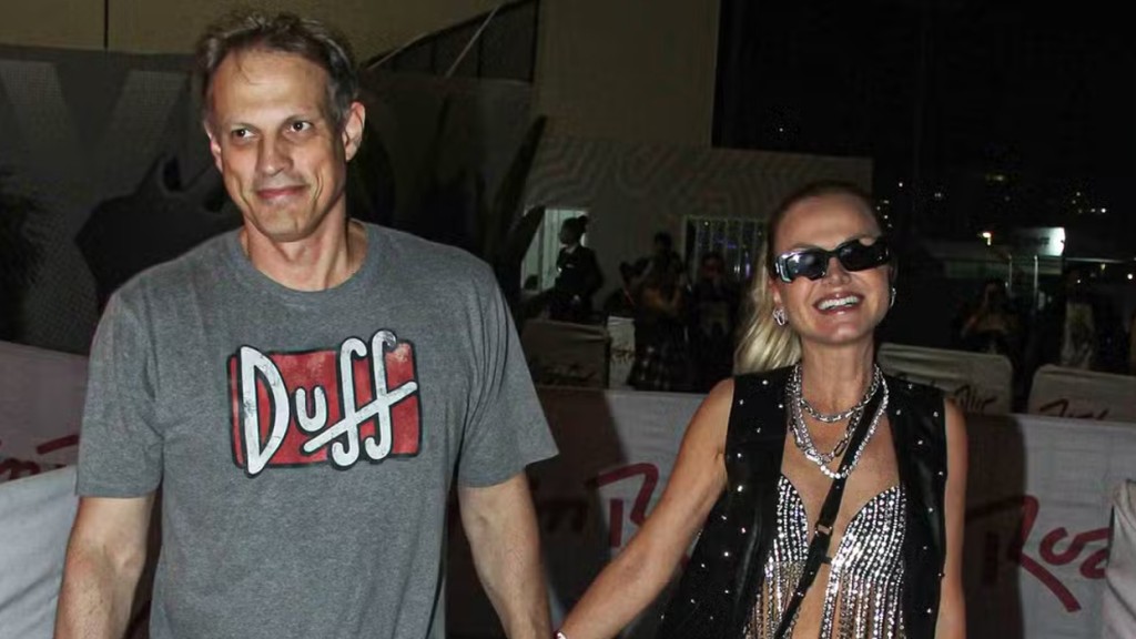 A apresentadora Eliana fez sua estreia nesta edição do festival Rock in Rio e escolheu um top biquíni com brilhos, colete de couro, corretes e
