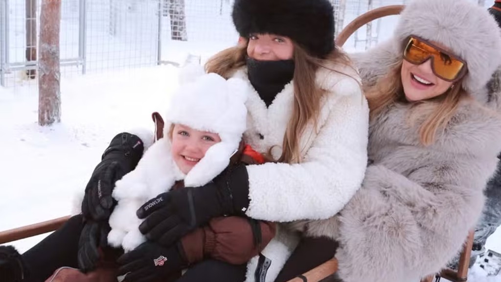 Ana Paula Siebert, Roberto Justus, Vicky e Rafaella Justus seguem a viagem de fim de ano com baixíssimas temperaturas e muita neve. A família está na Finlândia, onde passou o