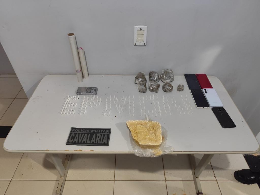 Equipes do 1º Esquadrão de Policiamento Montado retiraram de circulação 226 porções de entorpecentes, entre maconha e pasta base de cocaína, e conduziram cinco pessoas