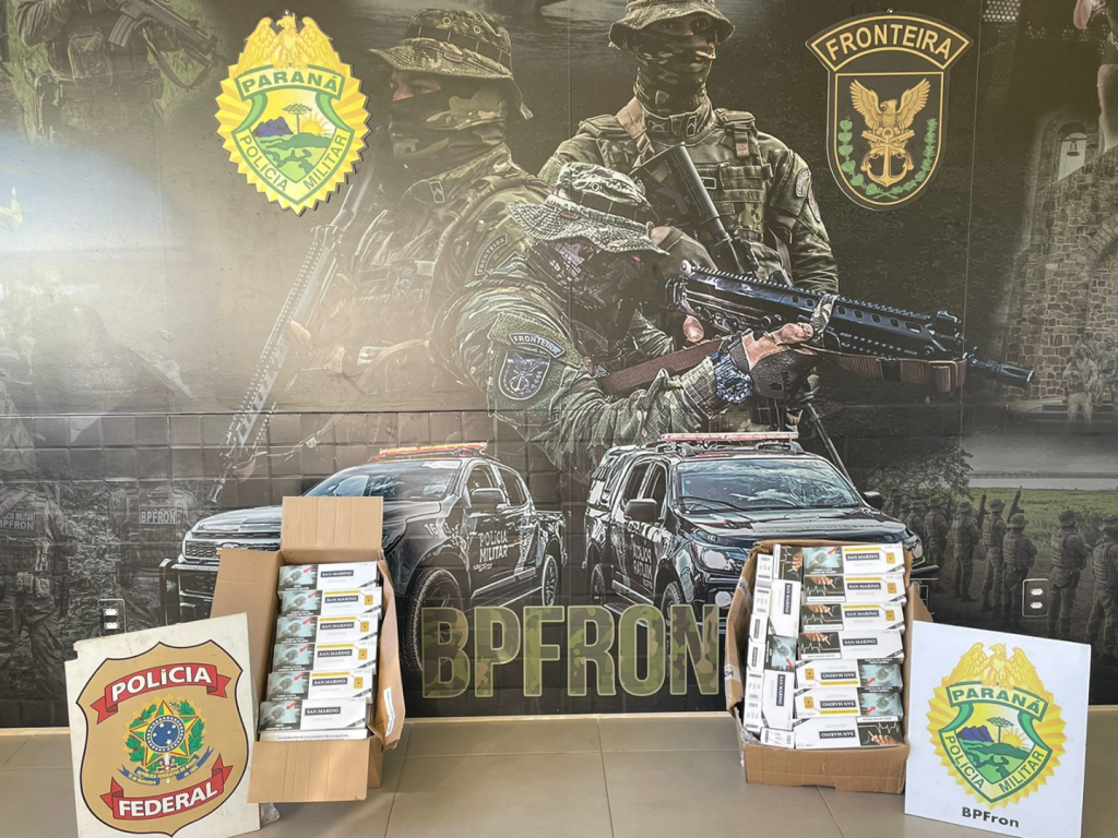 Guaíra/PR. A Polícia Federal e a Polícia Militar do Paraná apreenderam uma carga de cigarros descaminhados do Paraguai, na última quarta-feira (30/7), em Guaíra/PR. Na ação,