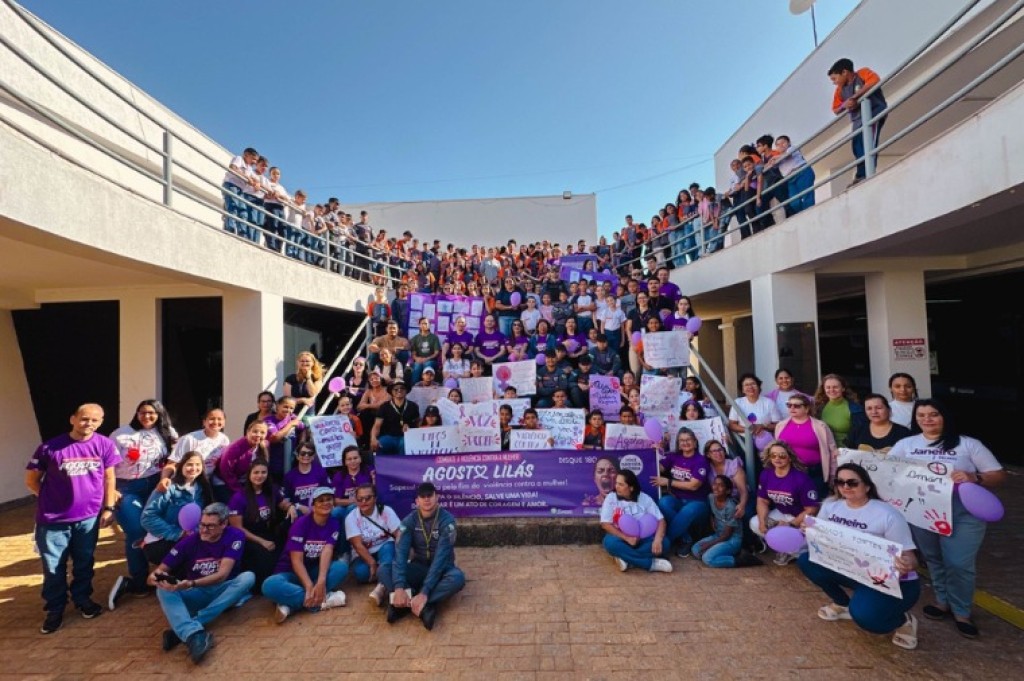 Centenas de estudantes das redes municipal e estadual de ensino participaram, nesta sexta-feira (15), do “Arrastão do Bem – Agosto Lilás”, uma mobilização pública de