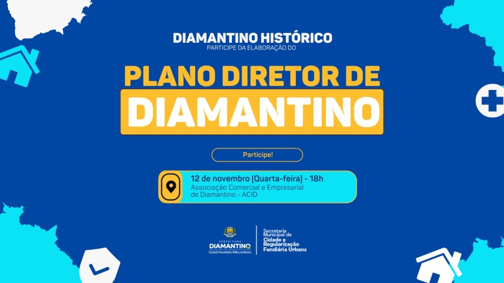 A Prefeitura de Diamantino, por meio da Secretaria Municipal de Cidades e Regularização Fundiária Urbana, em parceria com a Fundação Getúlio Vargas (FGV), convida toda