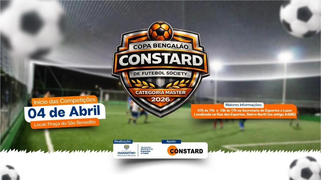 A Prefeitura de Diamantino, por meio da Secretaria Municipal de Esportes e Lazer, em parceria com a Constard Materiais de Construção, realiza neste sábado, 04