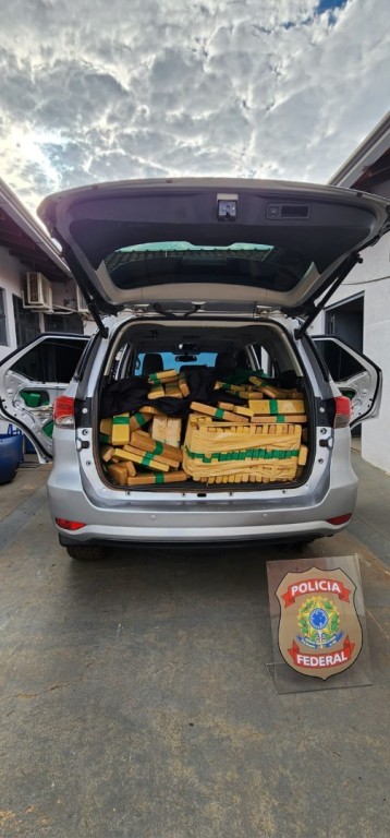 O material ilícito estava sendo transportado em uma caminhonete com placas falsas, completamente carregada, inclusive com fardos ocultos nas portas. O veículo também não possuía bancos traseiros, o que ampliava sua capacidade de carga.