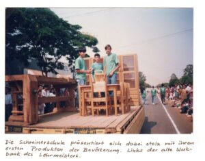 No final de 1993, o Instituto iniciou um curso de marcenaria com o objetivo de disseminar conhecimento, capacitar e desenvolver jovens, gerando qualificação profissional e renda. A atividade com madeira se apresentava como uma forma de expressão artística e criativa, oferecendo todo o conhecimento para que os jovens pudessem construir com as próprias mãos, transformando matéria-prima em objetos úteis e soluções. O curso incentivava os jovens a aprimorar os conhecimentos adquiridos na teoria, abrindo novas oportunidades no mercado de trabalho.