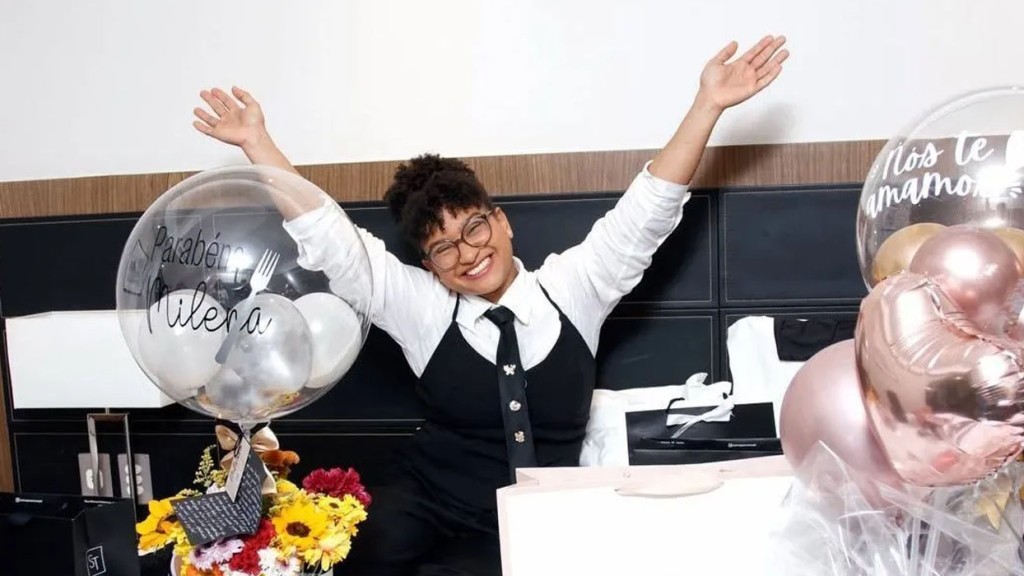 Enquanto a vítima estava sendo ouvida na delegacia, o suspeito enviou novas mensagens a ela, o que foi filmado por uma policial que fazia o atendimento.